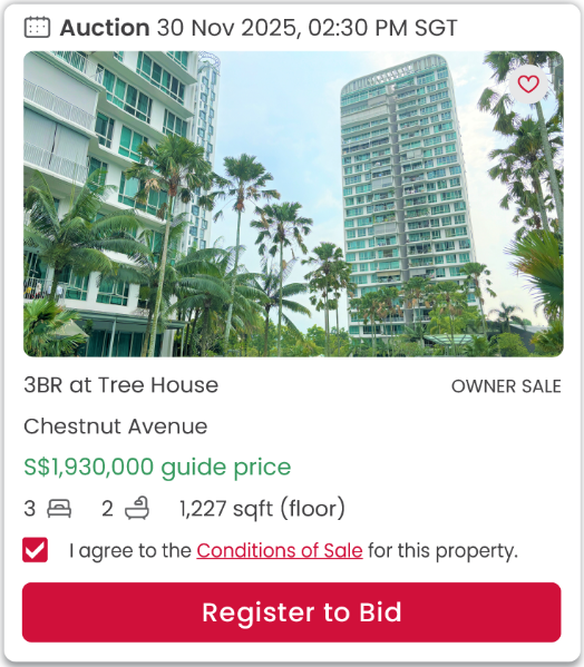 To participate in an auction remotely or on-site at the auction, register using KF Bidding app. The“Register to Bid” will only be active when you have read and agreed to the Conditions of Sale/HDBStandard Terms for the property.
